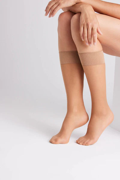 Mini media 20 DEN. Confeccionado con puño ancho confort antipresión que ofrece sujeción sin opresión.